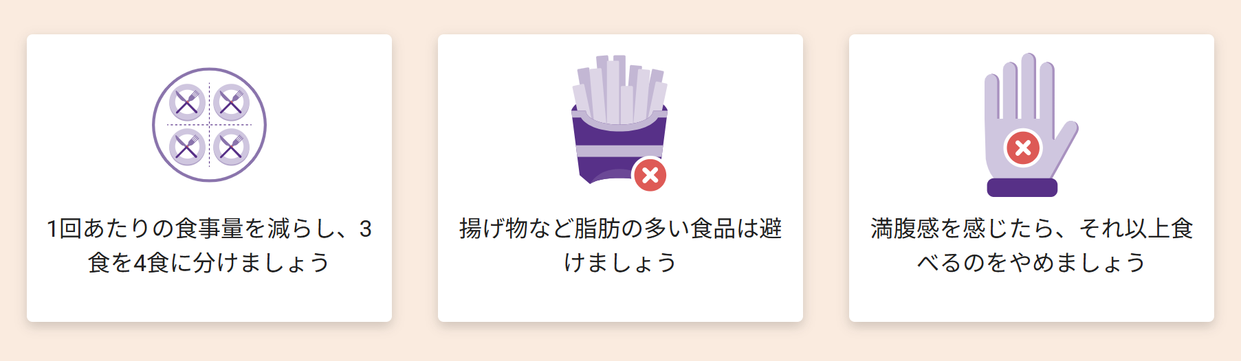 - 食欲抑制の効果により自然と食事量は減りますが、タンパク質やビタミンなどの必要な栄養素を摂取するように注意が必要です。
