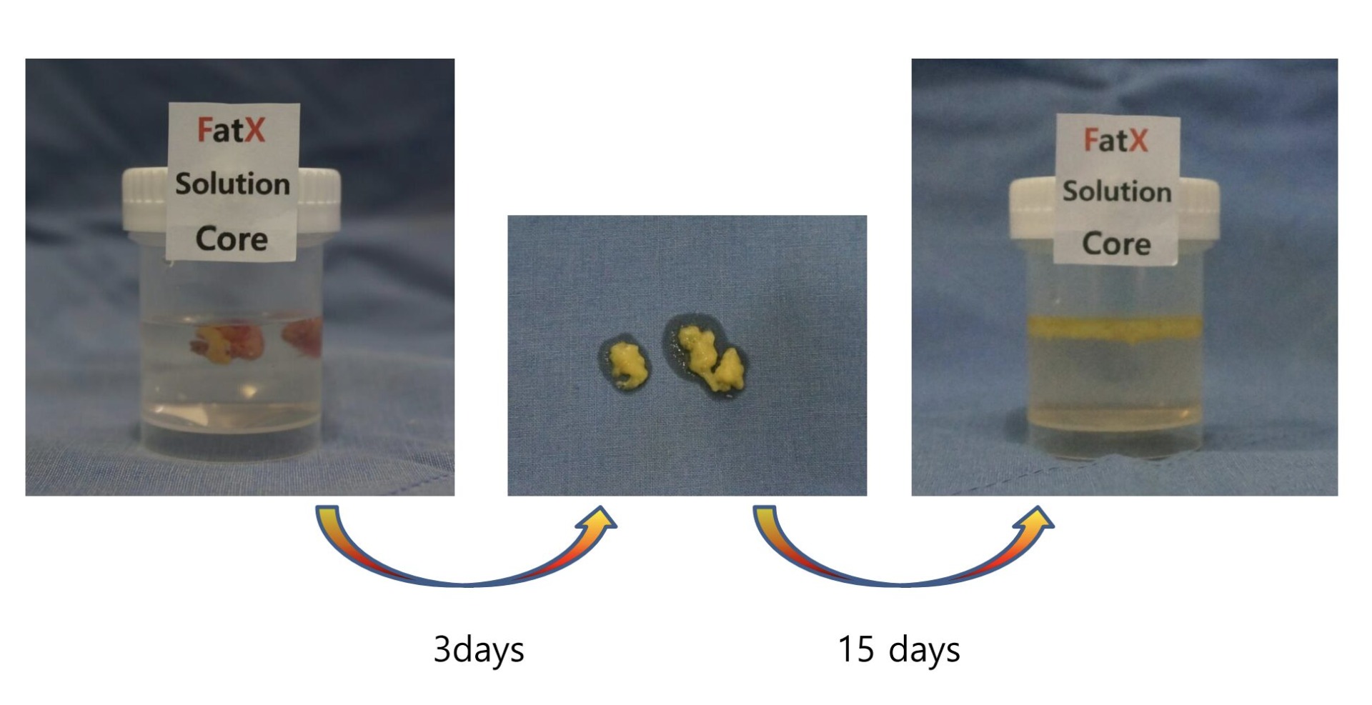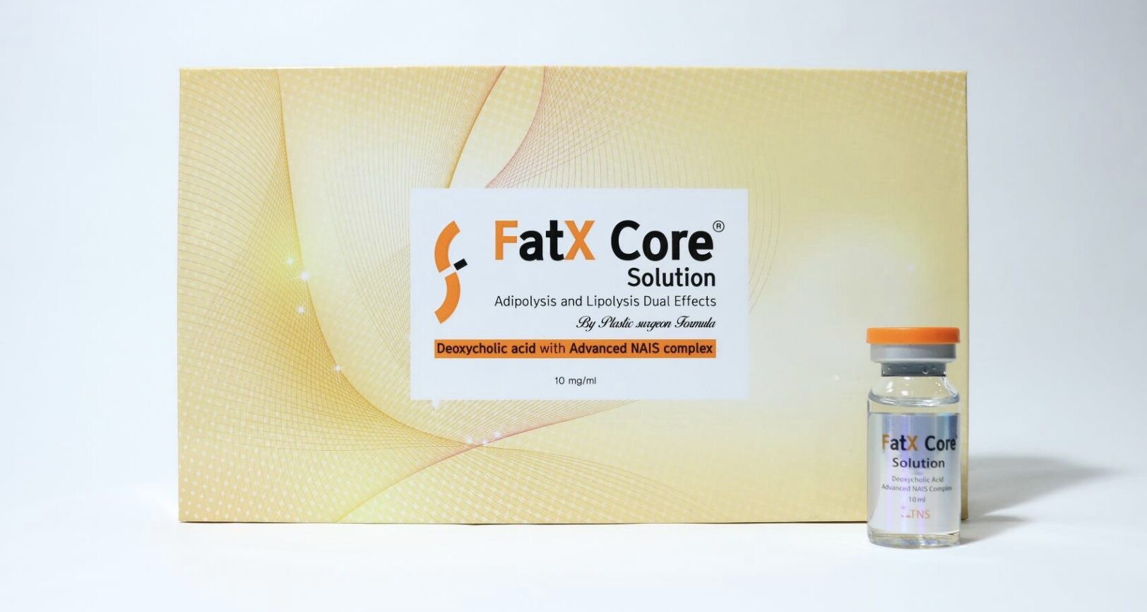 第4世代脂肪溶解注射Fat X Coreは米国FDAに脂肪溶解の効果が認められており、その安全性と効果が科学的に証明されています。デオキシコール酸1%配合されており、従来の脂肪溶解注射の10,000倍配合している最新の脂肪溶解注射であるため、より少ない回数でしっかりとした変化を目指せます。また、FatX Coreは、従来のFatXと比較してNAIS complexの配合割合を工夫することにより痛みと腫れを軽減し、術後の腫れも抑えることが可能になりました。また、一般的な痩身治療では、脂肪が減ることで皮膚が余り、皮膚にたるみが生じることがあります。しかし、FatX Coreは、脂肪細胞の除去後、皮下層のリモデリング効果によって繊維化およびコラーゲン合成を誘導し、皮膚のたるみを予防する効果もあります。